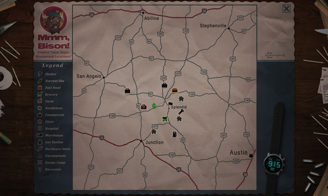 We modeled gameplay elements of Dead State after the original Fallout and X-Com, as well as Jagged Alliance and Suikoden. In addition to these inspirations, we utilized the genre-savviness of the team, and the RPG design experience the founders of the company had learned during our time at companies such as Black Isle, Troika, and Obsidian.